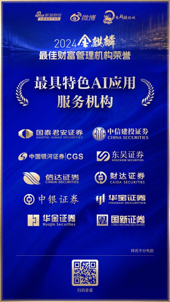 讲解:新浪财经金麒麟奖项从2014年启动,通过券商线上应用评测、金融科技布局论述发布、券商金钱科罚立异峰会等方面全见解工作券商金钱科罚转型,展示券商数字化转型风范。
